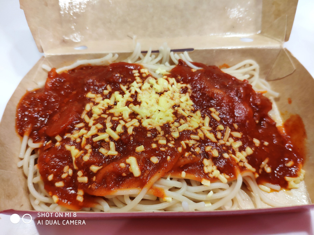 I am not a 100% fan of the Jollibee spaghetti meal but the taste is fine. It is a combination of sweet and sour flavor on the pasta sauce sprinkled with cheese on the top.