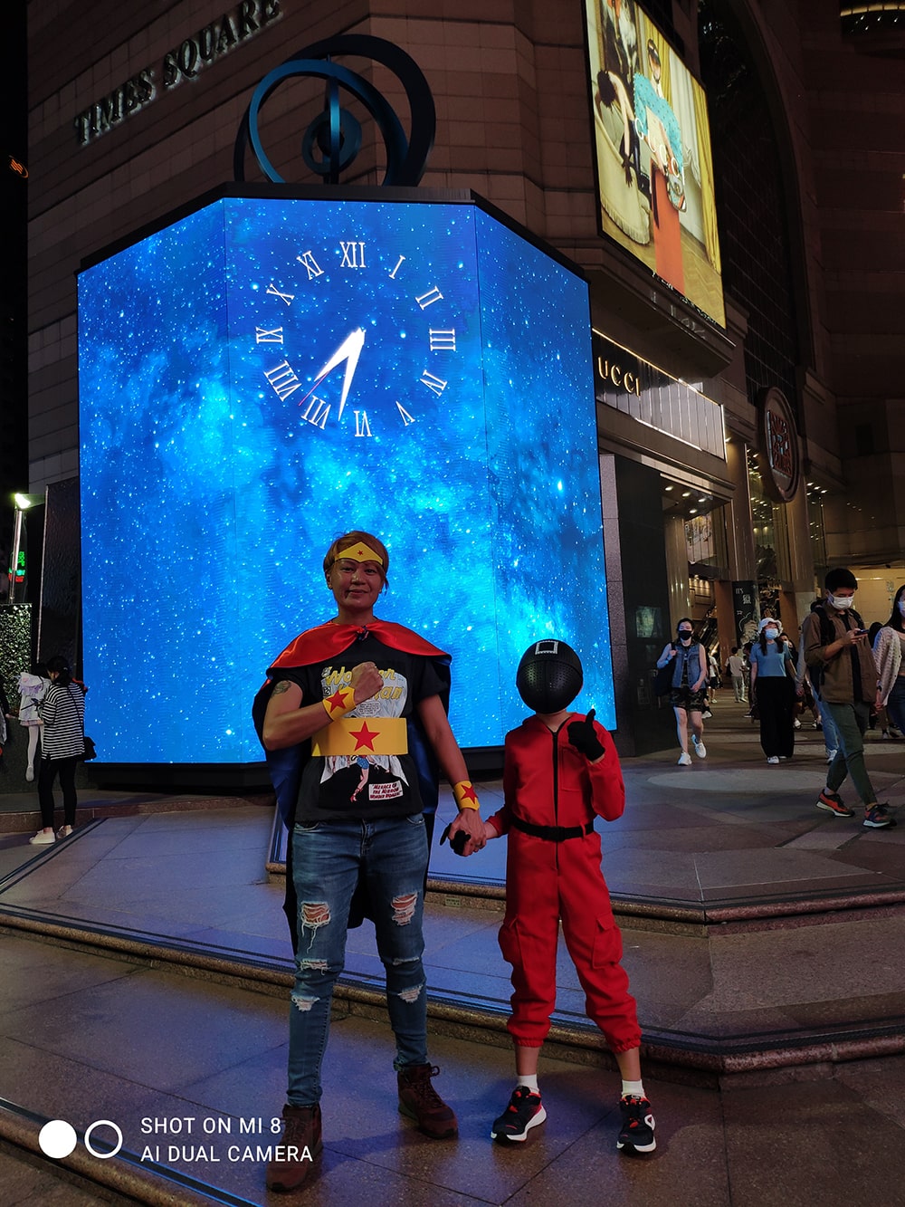 This Halloween celebration, a lot of kids, teenagers, and even adults wear their favorite costumes and they go outside to take some photos with other people. My wife had his Wonder Woman costume while my son had his Squid Game soldier costume. Here are some family photos that we had.