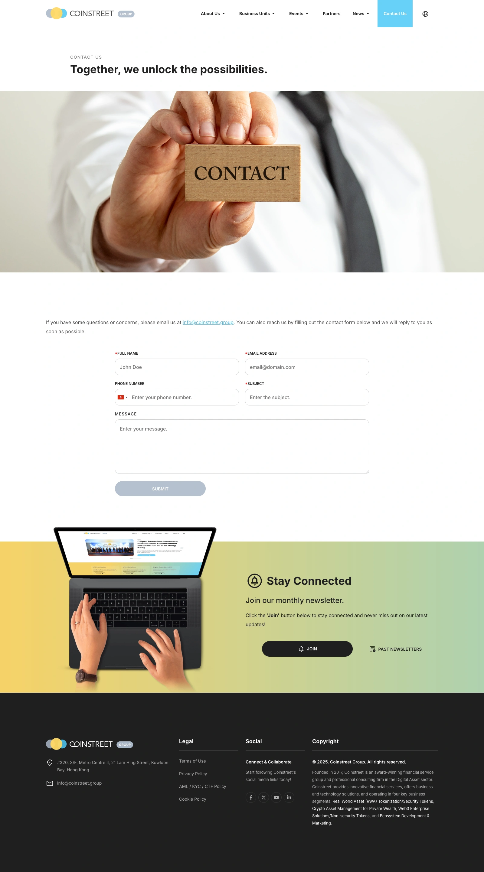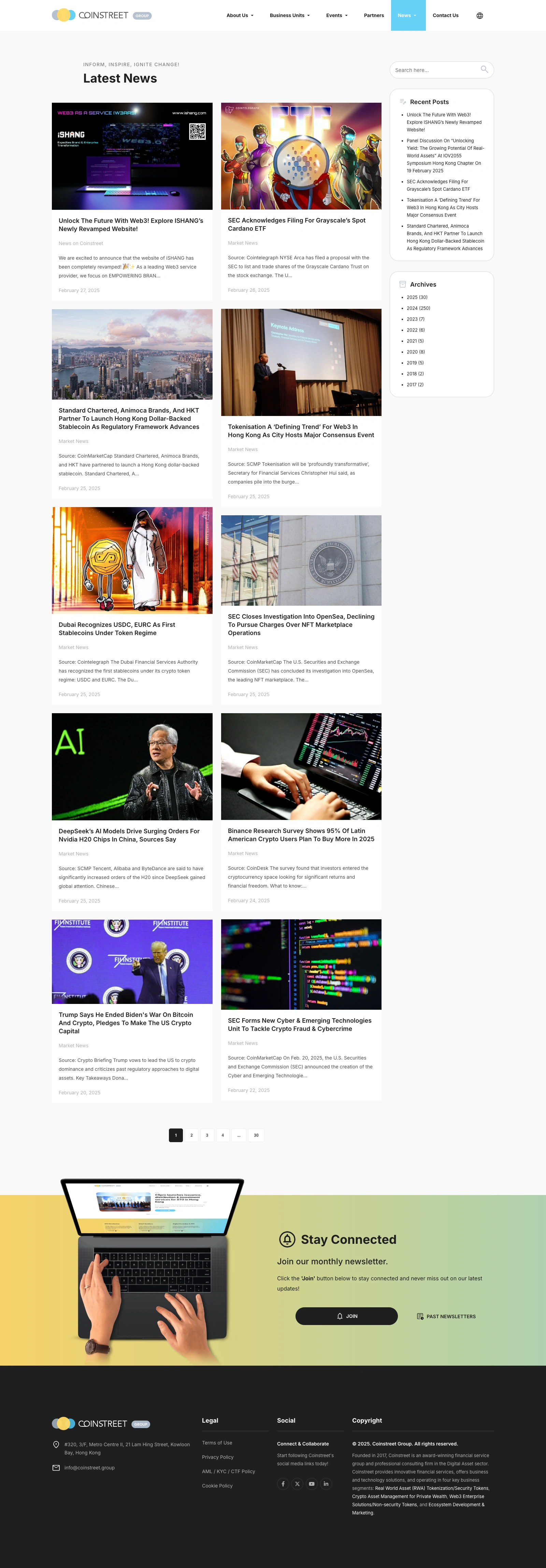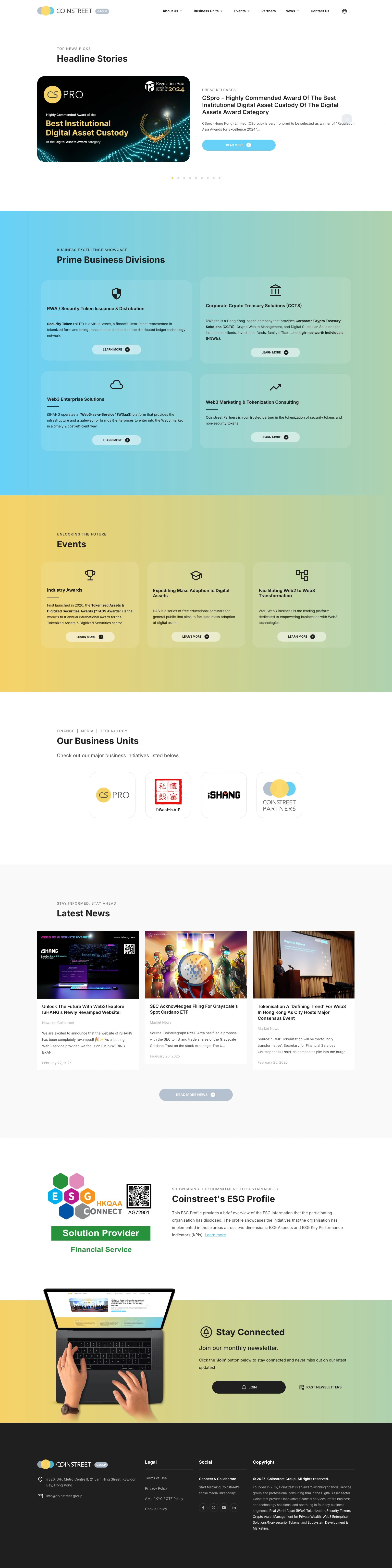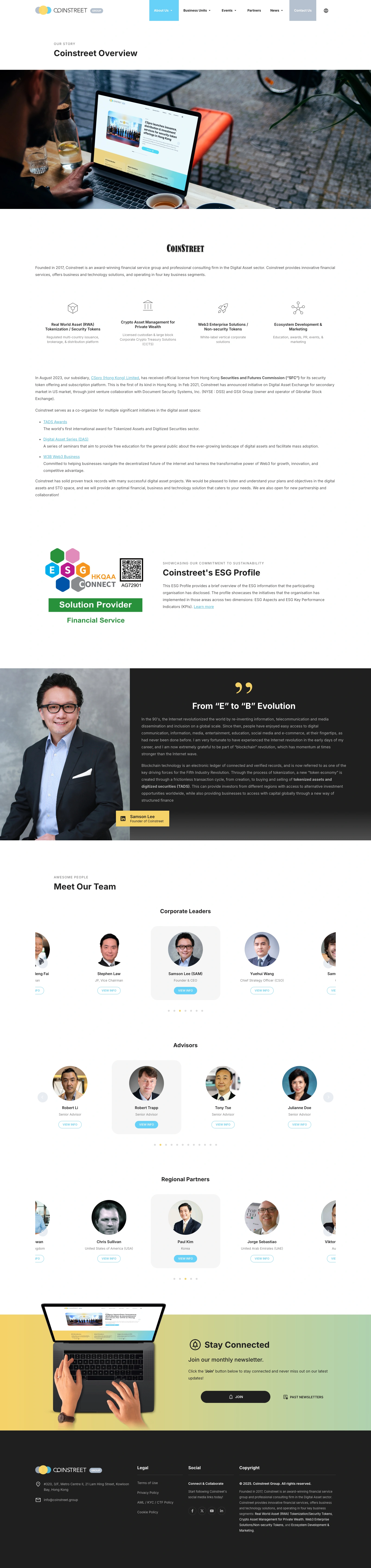 Founded in 2017, Coinstreet is an award-winning financial service group and professional consulting firm in the Digital Asset sector. Coinstreet provides innovative financial services, offers business and technology solutions, and operating in four key business segments.