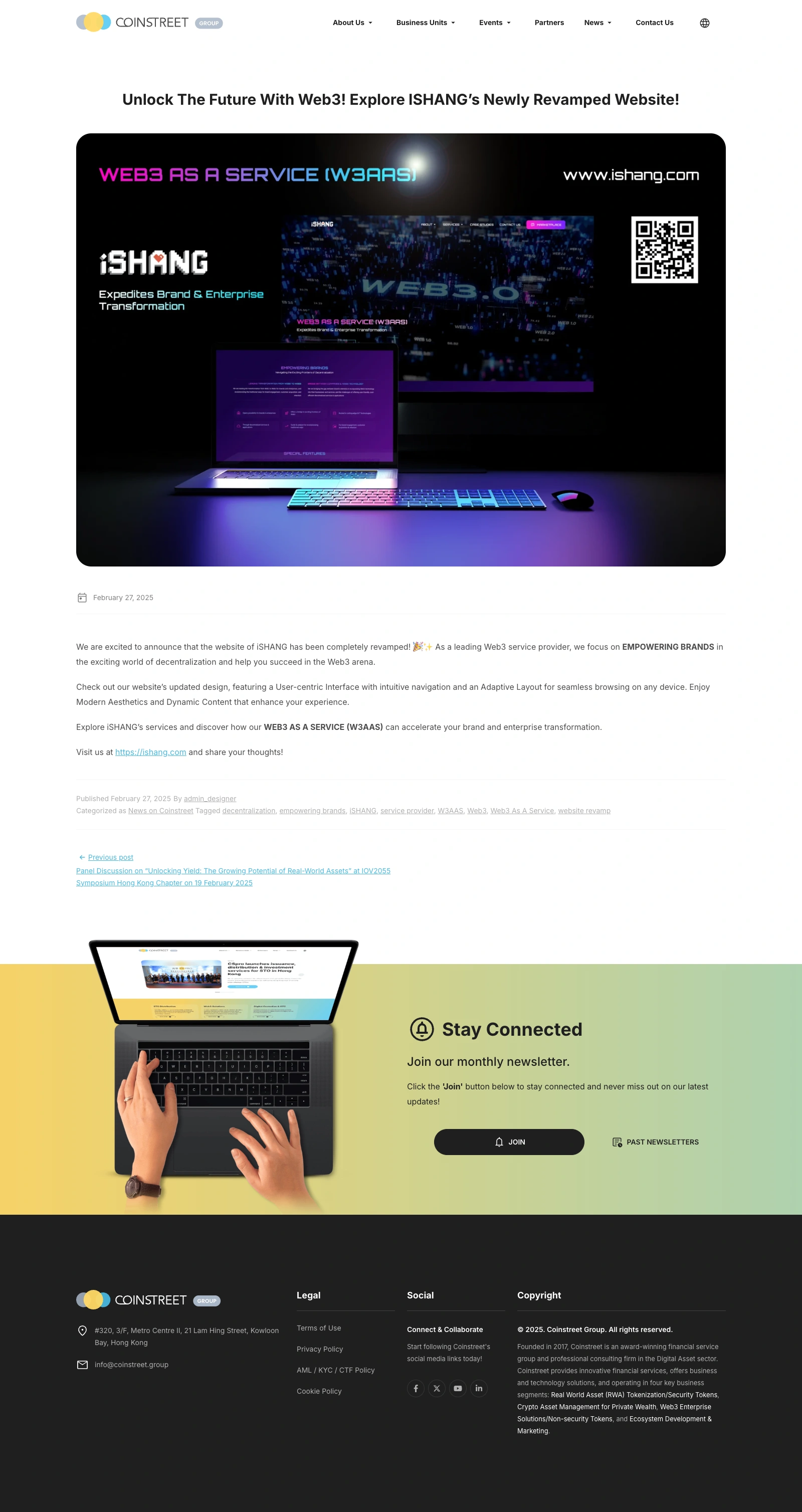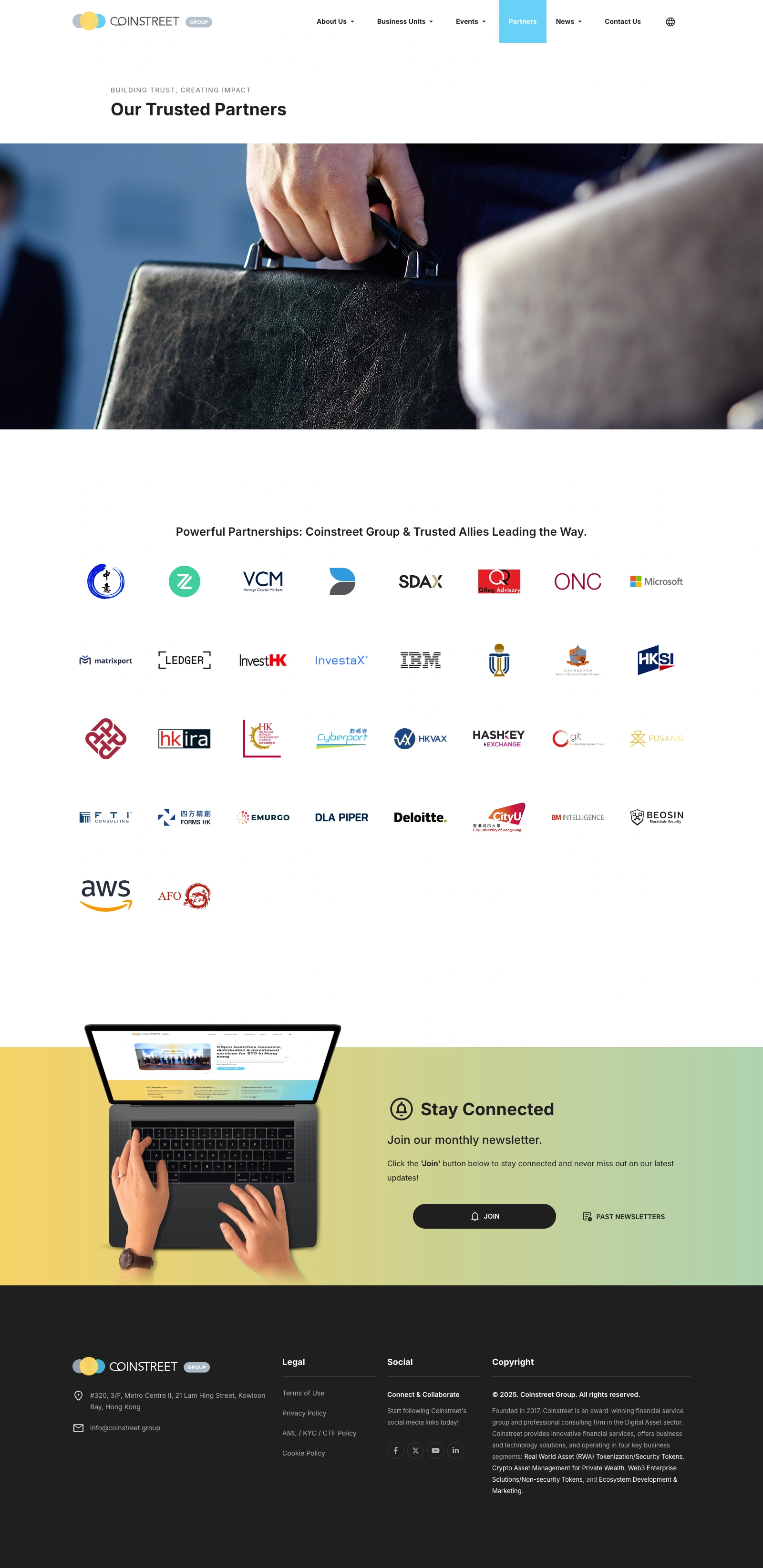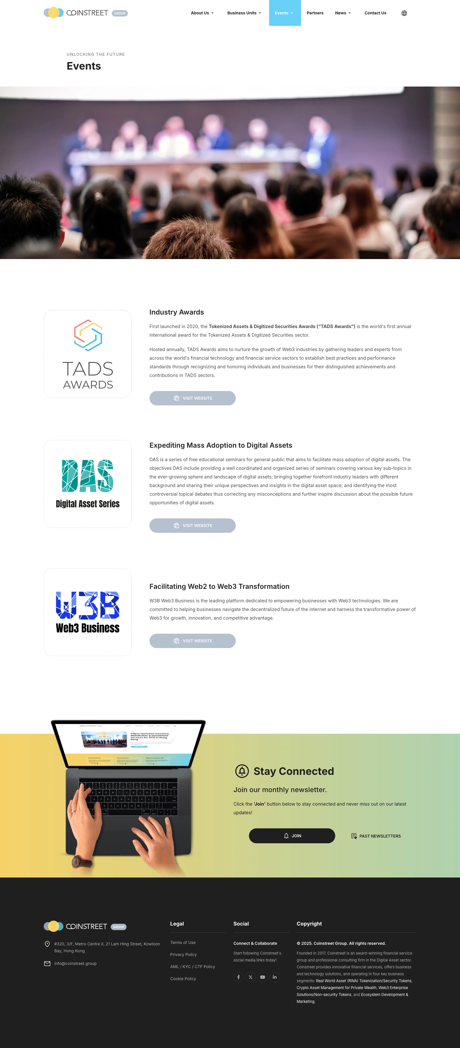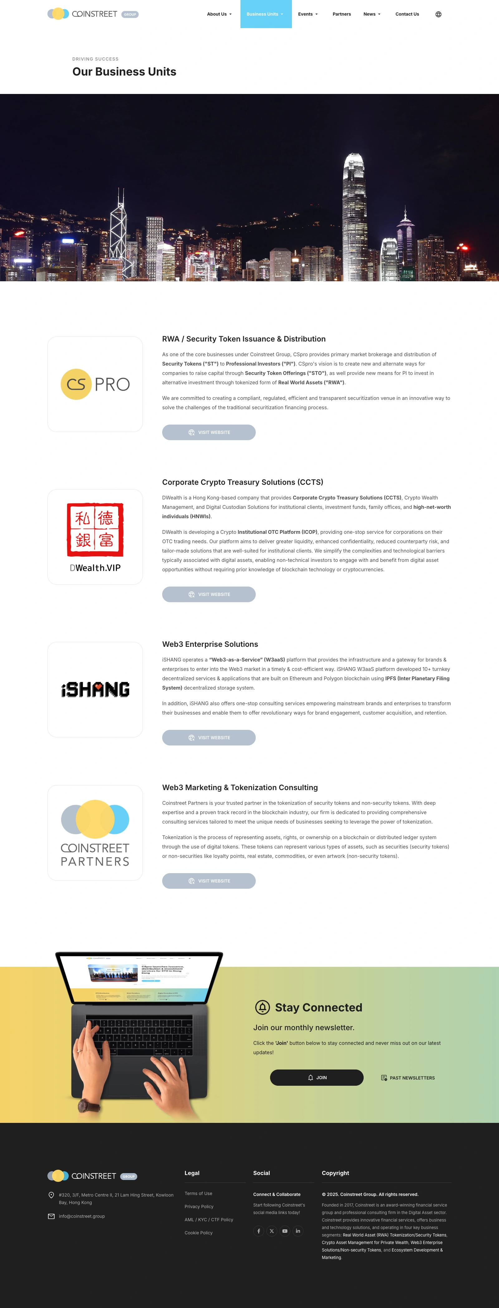 | Incorporating Business Unit Websites Integrating six different business unit websites under the Coinstreet Group umbrella. |
