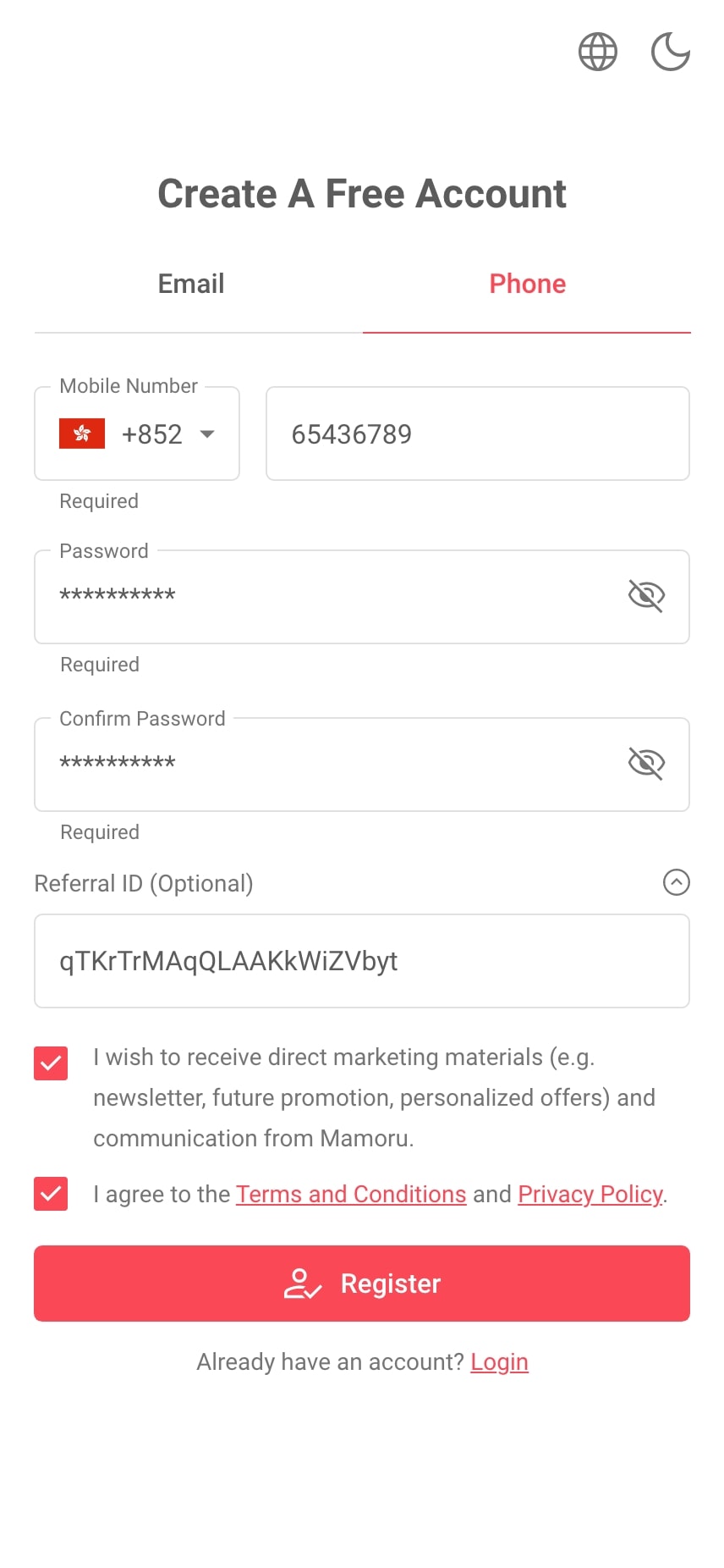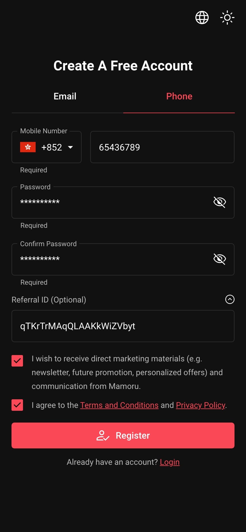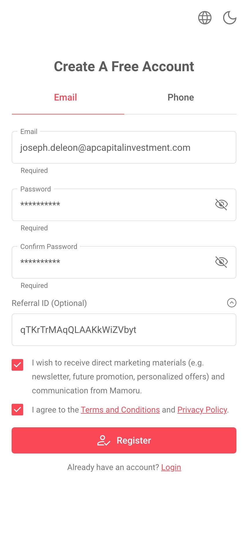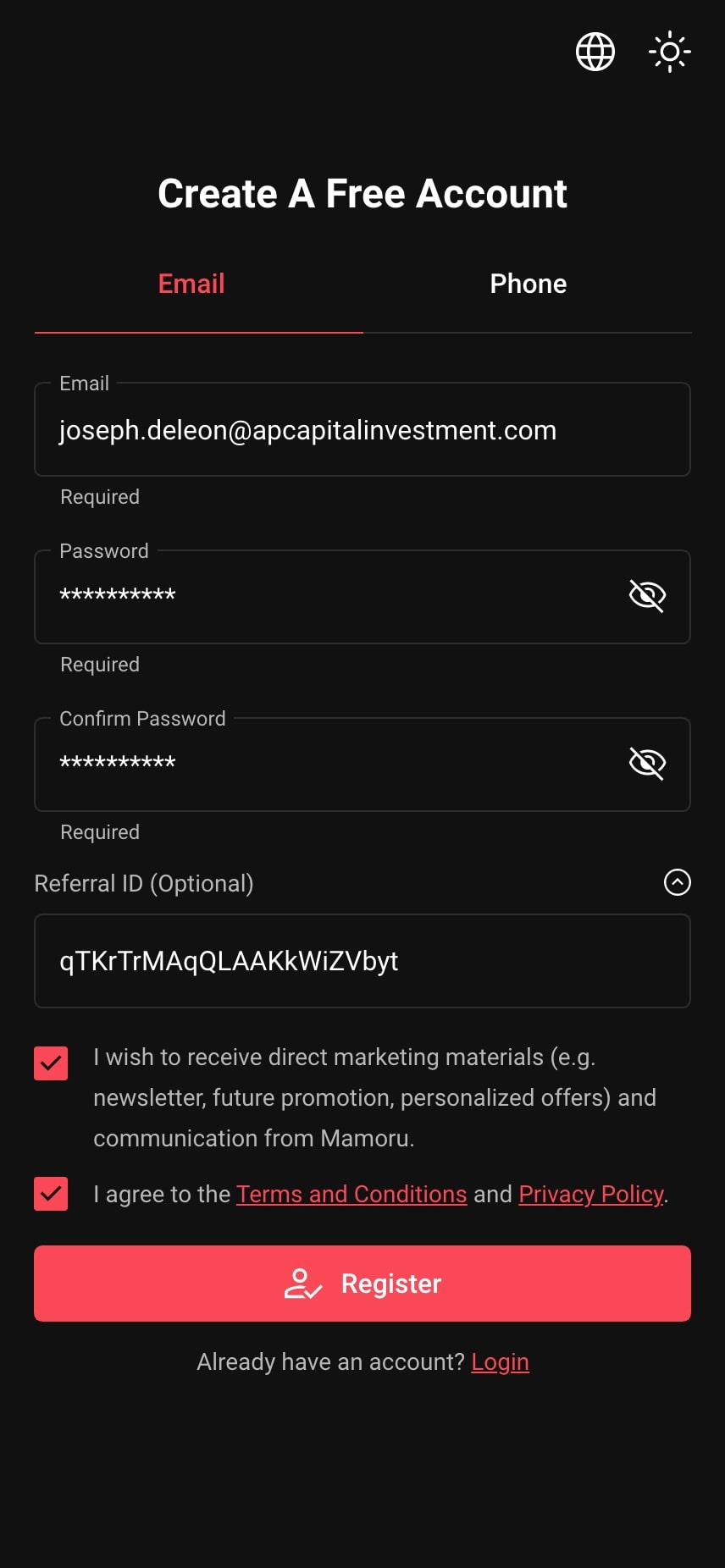 | Confusion in Registration Options Users often feel confused about where they can use their email address or phone number to register in the mobile app. |